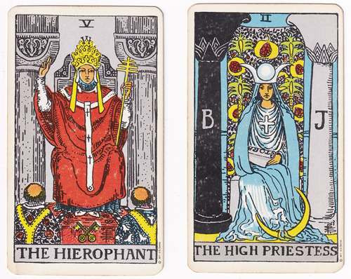 Idag verkar vi vara på väg mot något annat. Den representativa politiken fortsätter dominera i samhället, men allt fler människor söker andra vägar för att påverka samhällsordningen. Hierophanten står nu inför möjligheten att välja att bli det hans namn innebär – den som gör det heliga synligt – och därmed bli en positiv manlig pendang till översteprästinnan.