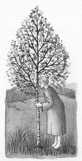 Veckan före ritualen hade jag hittat en lämplig björk som var villig att offra sig för att delta i ritualen. När jag stod lutad mot stammen med pannan mot barken och frågade om den ville delta i sommarsolståndsritualen sa den inte bara 'ja' utan trädet gav det mig också melodin samt de tre första raderna på den sommarsolståndsgalder jag de senaste veckorna bett att få. Nu hade det börjat mogna, början på galdern kom. När det är helt moget får vi den sista raden, tills dess får vi nöja oss med en 'hittepå'-rad.