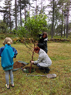 Därefter placerade trädbärarna trädet i gropen och nytt liv skapades.